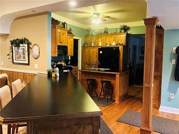 Timeless Beauty! A classic home with character, charm, and room to grow with a large insulated 77 x 32 shop that could easily be turned into an apartment or a man cave. Shop already has an equipped kitchen and 2 bathrooms. This home has an open kitchen/family room with large island, including kitchen appliances, nice dining room, roomy laundry room and a wrap around covered porch. A nice large fenced in yard and storm shelter. This home has been updated. Motivated seller.