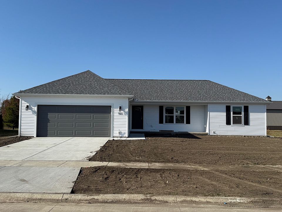 Come home for the holidays by Thanksgiving in this 1-story NEW CONSTRUCTION underway! Dirt is moving on this very popular "KASE" floorplan offering 3 bedrooms, 2 bathrooms, cathedral ceiling between the eat-in kitchen w/island and living room, laundry room and patio slider leading out to a 12 x 12 concrete patio. Beautiful QUARTZ kitchen countertops and LVP flooring throughout entire house. The primary suite will not disappoint with dual vanity, walk-in shower an WIC. The snappy WHITE EXTERIOR with GRAY HIP ROOF encompasses approximately 1550SF of living space with 2x6 construction, a 2-car attached garage and seeded yard. As construction progresses, interior and exterior photos will be attached to this listing to show the immense quality, beautiful features and attention to detail that will blow your mind! Enjoy small town living at its finest with eateries, small businesses, bank, USPS, gas station, community park and Fisher Schools.