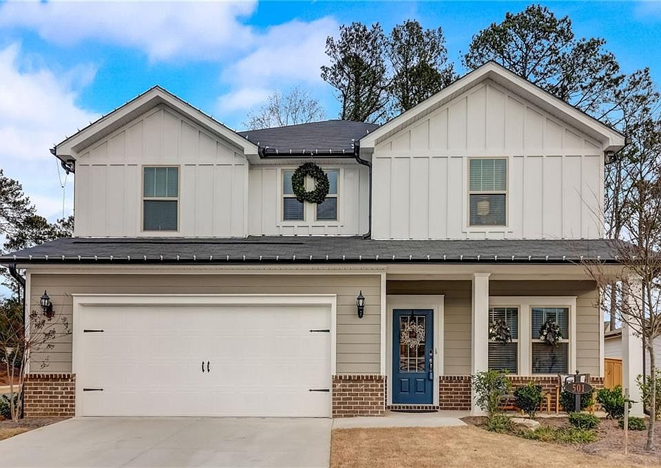 Experience luxury living in the sought-after Meritage floor plan, Dakota, located in the completed Riverside community. This 1 year old home boasts designer upgrades throughout, making it feel brand new! Sited on a corner-level lot with a fenced backyard, highlighted by a custom-built flagstone fire pit and beautiful landscaping. Quality craftsmanship, tasteful finishings, and energy efficiency check all the boxes. The gourmet kitchen is sure to please with gorgeous quartz countertops, generous cabinetry, a large prep island with bar seating, double wall oven, gas surface cooktop, and a walk-in pantry. Enjoy the best of both worlds with a casual dining area adjacent to the kitchen and an elegant dining room perfect for hosting large gatherings. The upper level of the house offers more living area, with a loft space that separates the secondary bedrooms from the Primary Suite. The Primary Suite includes an oversized shower with seamless glass, designer tile with a herringbone pattern floor, dual vanity, and a spacious walk-in closet. Additionally, there are three secondary bedrooms, a full bathroom with dual vanity, and a large laundry room on this level. The home's outdoor living space features a covered patio with a vaulted tongue and groove ceiling, offering ample room for outdoor dining and living furniture. Riverside community offers affordable amenities with a clubhouse, pool, common area fire-pit, and playground. Prime Woodstock location with nearby downtown Woodstock's boutiques, restaurants, parks & nightlife!