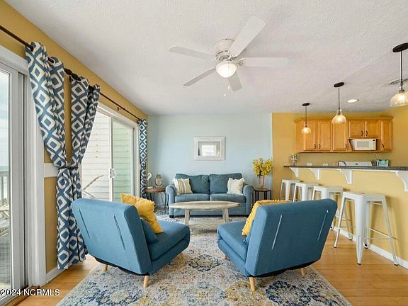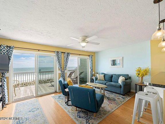 Discover the epitome of coastal living at 501 Pelican Court, a charming 1-bedroom, 1-bathroom condo nestled within the prestigious Ocean Dunes community in Kure Beach. Perfectly positioned to capture breathtaking ocean views, this residence offers a tranquil retreat mere steps from the sand and surf. Upon entering, you are greeted by an inviting open layout that maximizes space and natural light. The living area features expansive sliders that frame panoramic vistas of the Atlantic Ocean, creating a serene backdrop for everyday living and entertaining. Step outside onto the private balcony to savor morning coffee or evening sunsets over the water, feeling the gentle sea breeze and listening to the soothing sound of waves. The kitchen is equipped with ample storage, and overlooks the main living area, making the space feel nice and open. A cozy dining area adjacent to the kitchen provides a perfect spot for intimate meals or casual gatherings. The bedroom is a peaceful haven boasting a new furniture set and king size bed and mattress (that conveys with the sale) ensuring restful nights and waking up to the sound of the ocean. The bathroom is well-appointed with a combination tub/shower with tile surround and contemporary fixtures. Ocean Dunes offers an array of amenities, including direct beach access, 3 outdoor swimming pools, 1 Indoor pool and hot tub, a fitness center, basketball court, 3 tennis courts, sauna, playgrounds, shuffleboard, grills and picnic tables, enhancing the coastal lifestyle experience. Whether as a primary residence, vacation getaway, or investment opportunity, this condo presents a rare chance to own a piece of paradise in one of North Carolina's most coveted coastal communities. Don't miss out on this opportunity to live the beach lifestyle you've always dreamed of. Contact us today to schedule a private showing of 501 Pelican Court and experience oceanfront living at its finest.