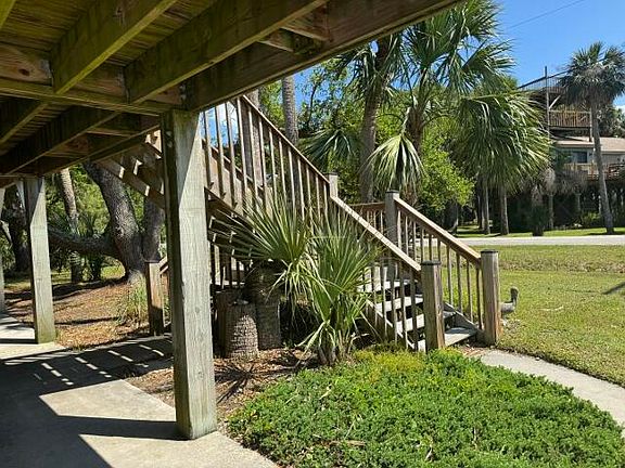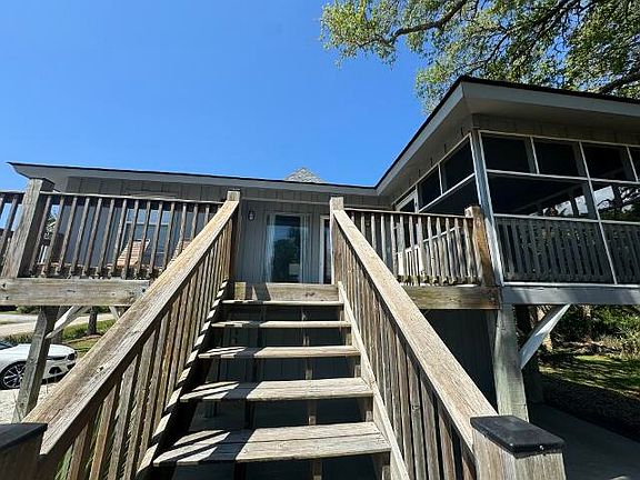 Phenomenal opportunity to own a coastal cottage just 350 feet from sandy beach on direct beach access. Entrance to home offers a large sundeck and comfortable screen porch for relaxing and entertaining. As you enter home from deck, you will delight in this 3 Bedroom, 2 full bath that offers a spacious open living and dining area with access to sundeck on rear with stairs to ground level. Guest Bath was totally renovated in 2024 and is stunning. The kitchen is conveniently located on rear of home as well as laundry room with private owners' storage. The cottage is walk-in ready with coastal decor and a fully equipped kitchen. Few homes can offer sunrise sky views on entrance deck and sunset skies from rear deck. The best of all worlds!The ground level of home has plenty of parking, large storage room with barn door access to keep a smaller boat, private outside hot and cold shower, cookout and entertaining area, and large lot with coastal foliage to relax. The current owners have lovingly maintained the cottage since 1992. It is currently on a seasonal rental. This home was moved to its current location in 1992 and had new pilings, plumbing, electrical and more replaced. Buyer to confirm.