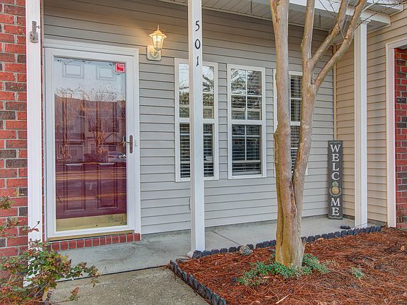 This well cared for townhome is ready for new owners! 501 Pond Pine Trail has over 1300 square feet of open living with 3 bedrooms, 2 full baths, powder room, downstairs primary suite with laundry access in ensuite bath, all weather sunroom/porch with private grilling patio all on a private lot. Other features that help accentuate this beauty include: fresh paint throughout, new flooring in primary bathroom and powder room, hardwood/laminate flooring in family room and kitchen, new woodblock island and counter tops in kitchen, updated plumbing and lighting fixtures and fans throughout. Call today for your personal tour!