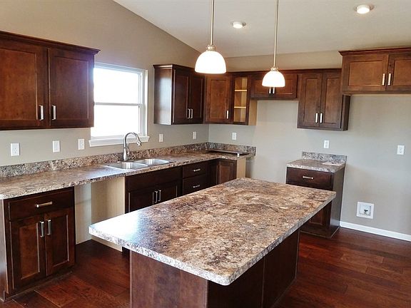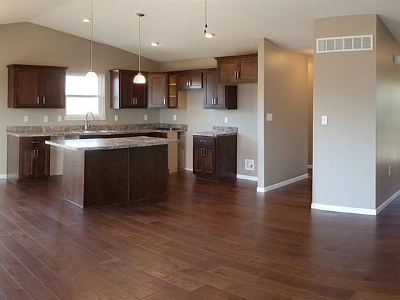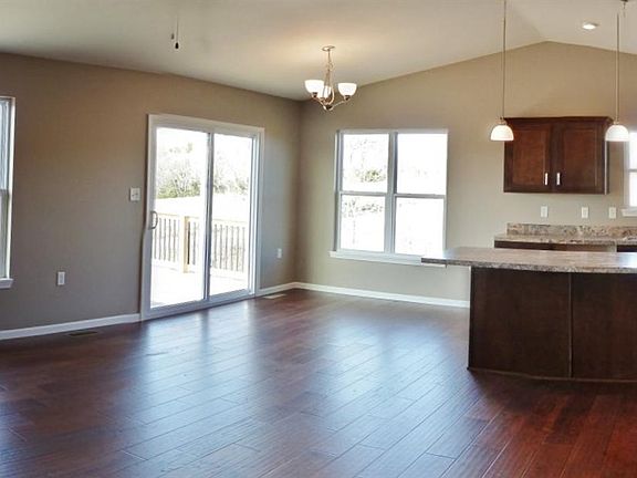 Fantastic ranch home with light and open floorplan. Nice curb appeal with corner lot and stone accents plus welcoming covered entry. Open Living Room with vaulted ceiling to Dining Room and Kitchen. Tray ceiling in Master Bedroom with large walk-in closet. Double sinks with onyx counters in Master Bath with seperate shower and tub. Cabinetry for the home is custom made by Ball Custom Cabinetry. Entry, laundry, and baths will be tile flooring, kitchen and dining rooms will be hardwood.