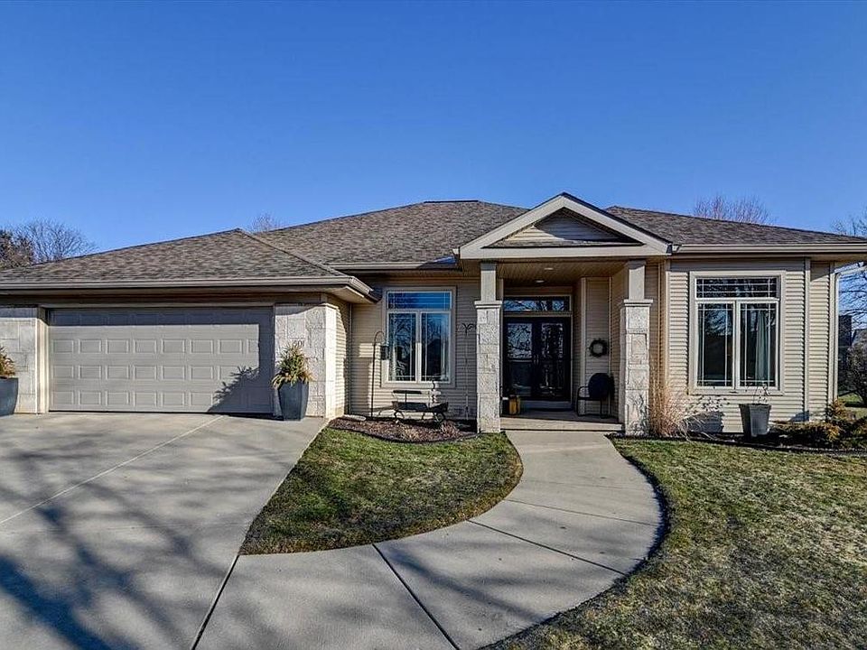 On a cul-de-sac in a wonderful neighborhood is this Beautiful Ranch-Style Home w/amenities for everyone! Great Room w/floor-to-ceiling Stone Fireplace & tons of natural light; overlooks meticulously maintained backyard. Flex Room (now office) could transform to bdrm if more needed. Formal dining area & casual dinette too w/patio doors that lead to pool/patio & deck; summer is coming - Invite your friends! Kitchen is complete w/breakfast bar, Corian counters, SS appliances (2022) subzero fridge & more. Huge Primary en suite w/WIC. LL finished 2016 features 2 Rec Room areas & another bedroom & office too; so many options! 3-CAR TANDEM GARAGE, Laundry in LL but hookups on main floor in mudroom. Updates: Roof 2018, Furnace 2020, Garage openers & insulated door 2023, Extra driveway pad & more!
