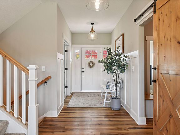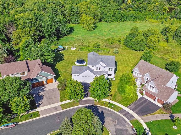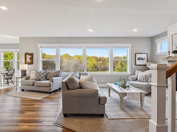 Welcome to your dream home located on the largest lot in coveted Kings Highlands! This home is beautifully designed with 3 bedrooms, 2 ½ baths with main floor office, custom blinds, and water filtration system throughout. As you enter, you are greeted by a bright and spacious entryway wrapped in board and batten into an inviting living room with a cozy stone gas fireplace, open-concept kitchen, and huge dining room. Filling the space with natural light, the living and dining room boast large windows overlooking a serene meadow with the Crow River behind it. The custom designed kitchen features quartz countertops, stainless steel appliances, large pantry, open shelving, full-wall tiled backsplash, oversized center island, ideal for both everyday cooking and entertaining. The mud room features a knotty alder barn door with two separate benches and cubbies. Adjacent to the mud room is a conveniently located half bath and storage room with numerous cabinets. Retreat to the spacious loft on the second level and settle in for a movie with built-in surround sound along with a huge, tiled laundry room with a barn door. The vaulted master bedroom is complete with a private ensuite and a gorgeous tiled floor and shower along with a free-standing tub and a walk-in closet. Step outside to enjoy a quiet cul-de-sac and beautifully landscaped backyard with in-ground dog fencing spanning entire lot, firepit, expansive garden, perfect for summer barbecues or quiet evenings under the stars.