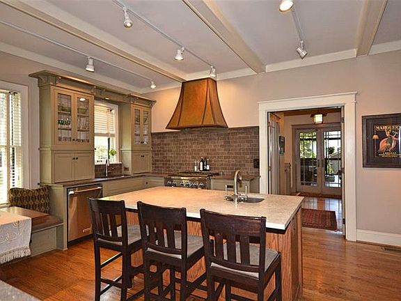 - KITCHEN DESC: Eat In Kitchen, Pantry, Smooth Ceiling, Window Cov, Wood Floor, Kitchen Island, Sitting Area, Marble, Built Ins