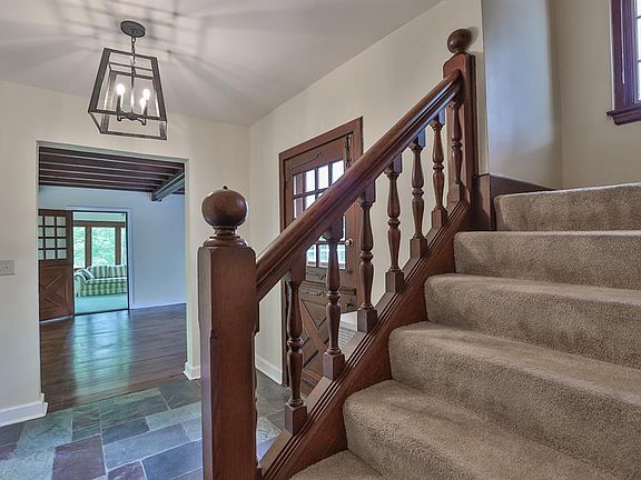 Enjoy 1.14 acres of Green Oasis! Over 3,400sq feet! Enjoy Kit w/gas cooktop, bev refrig, cherry cabinets, SS Appls. window seat, hw flrs, pella insulated windows, dental molding, 2 tiered deck, carpet & 1 car gar. Solarium, 13X8, 3rd fl w/2 large BR, Master Suite w/study, dressing room, built in dressers, full bath! Glass block windows, beam ceil in LV, WBFP, vaulted ceil, double doors, basement has been waterproofed by Everdry and it is guaranteed!