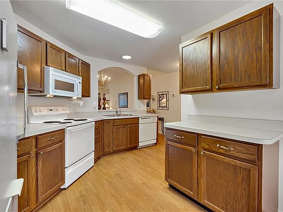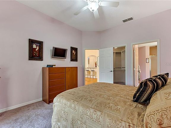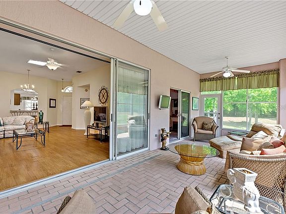 Location Location Location! Furnished Ridge Crest 3 bedroom / 2 bath model on very private conservation lot has south-facing Florida room overlooking an HOA-owned and maintained dry basin. Under roof semi-private front porch enters a light and bright central living area where skylights and patio doors bring the Florida sunshine inside. Master suite has full private bath, walk-in-closet with built-in shelving and double patio doors to Florida room. Split bedroom design offers privacy to your house guests. Eat-in kitchen has ample counter space, cabinets, breakfast bar and convenient access to garage. Large closet pantry, installed cabinets and washer/dryer in separate laundry room. Florida windows and wall heat/AC unit in 286 SF Florida room with brick floors and patio door access from living room and master suite. 2-car garage with pull-down ladder access to attic, insulated garage door, laundry sink and installed cabinets. Roof replaced prior to 2006 purchase. All exiting furnishings included. Vehicle in garage is reserved. Sold As-Is. HOA fee includes basic cable TV with 2 cable boxes, lawn mowing and exclusive access to 12,000 SF resident-owned private clubhouse and amenities. Adjacent to recently opened 18-hole White Heron Golf Club. High Vista is a 55+ community with outdoor heated pool and spa, fitness center, library, pub and many organized activities. Tennis, pickle ball, shuffleboard and bocce courts. Miles of biking & walking trails within Ridgewood Lakes gated community. Shopping, Disney, Universal, Orlando and Central FL entertainment nearby, easy access to I-4, medical facilities, airports and Sunrail Station. Advent Health hospital and everyday shopping needs are 3 miles away.