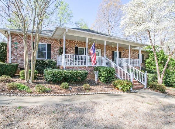 Home is located in 100% USDA Financing location for qualified Buyer. Brick ranch style home for the outdoor lover. Front covered porch as well as oversized backyard deck w/ pergola and ground level firepit for outdoor enjoyment. Home is built on unfinished basement foundation w/ 10'+ ceiling height and unfinished floor. Side entry 2 car garage is situated on corner lot w/ cul de sac drives on both sides of home. Entry off front door leads to foyer that opens to living room w/ cathedral ceiling and larger corner gas log fireplace. Entire home features 9' ceiling height. Sunroom located at back of home overlooks the entire backyard w/ side window awning. Bedrooms in this home are all larger than average and secondary one share full hall bathroom. Master suite w/ large walk in closet and bathroom featuring double sinks, garden tub and walk in shower. Area of kitchen has pantry closet space, 1/2 guest bathroom and walk in laundry room w/ built in cabinets and area that is plumbed for sink. Traditional layout with a separate dining room located off kitchen. Ahh, the kitchen! Granite countertop space w/ stainless steel appliances. Cooks will love the gas cooktop w/ pot filler. Breakfast area also has bar seating at counter. Hardwood flooring and ceramic tile flooring is just one of the many upgraded features in this home located within minutes to Easley shopping area. No HOA fees nor restrictions in this small mature subdivision!