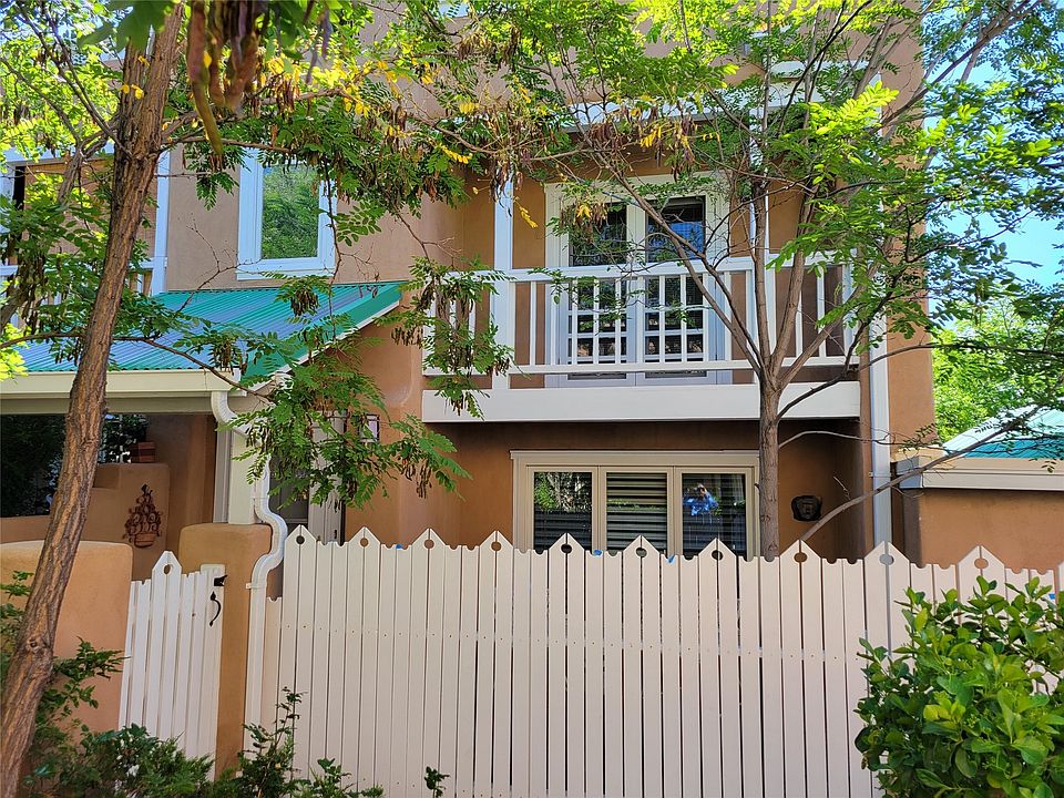 Welcome to this very well maintained and updated two-level condo in an excellent location less than a mile to the renowned Santa Fe Plaza. This is an excellent "lock and leave" property for those who like to travel or just have a low maintenance residence. Both beautifully renovated bathrooms have walk-in showers. Brick flooring on the main level and high quality carpeting on the upper level. A Murphy Bed in the guest bedroom conveys with the property. An oversized 1-car garage with a storage closet is included in the sale. High quality insulated Anderson windows. Enjoy the community pool, hot tub and clubhouse. Condo association maintains the stucco and roof.