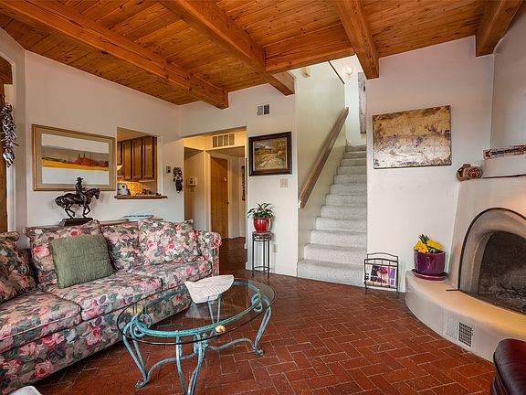 PRICED TO SELL!!!! With an ADDED BONUS! Seller will credit buyer 12 MONTHS of HOA Payments! This perfectly located Pueblo Del Rosario condo is a rare find, located a short distance from the infamous Santa Fe plaza. This light and airy condo is a sweet living spot and should not be missed if being close to downtown is your goal. A great floor plan offers a downstairs kitchen, dining and living room with a door going out onto a patio with a peek of mountain views. Upstairs feels spacious with a landing space leading to 2 bedrooms and a large bathroom. A wonderful alternative to spending time on your cozy patio is to relax by the nearby pool, a stone's throw from the condo.