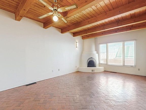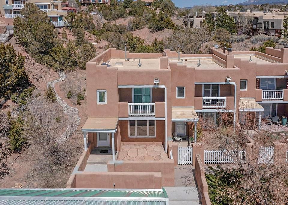 Only minutes from everything you love about Santa Fe, this 2 bedroom, 2 bathroom condo is move-in ready and just blocks from the Plaza, restaurants, galleries and DeVargas Mall. A short drive to the Opera and the ski basin. This end unit has front and back patios, mountain views and open spaces behind and beside unit providing maximum privacy and great outdoor spaces. Inside you will find herring-bone design brick floors throughout the downstairs and an updated kitchen. Lock and leave unit with detached, secure garage and ample visitor parking. Upstairs patio with views of the city. Seasonal community pool available for your summertime enjoyment. New Roof, New sliding door, new windows (except one). Exterior stucco is currently being repaired. Click on Virtual Tour for 3D walkthrough.