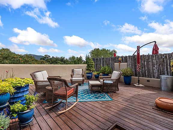 Step into this lovely two bed, three bath home in the highly coveted Rosario Hill Compound. Boasting a prime downtown location and a short walk to the Santa Fe Plaza, restaurants, retail shops and museums, inviting living spaces, indoors and out, and spectacular mountain views, this most-desirable home offers both privacy and charm and the ultimate in easy, low-maintenance and convenient living. Taking full advantage of the indoor/outdoor life loved by Santa Feans, this property has three outdoor areas perfect for dining, entertaining or just relaxing. The second level features an open concept, light-filled living and dining area with a kiva fireplace, opening onto a spacious deck offering beautiful mountain views; and a gourmet kitchen with stainless steel appliances and granite countertops, and leading to a private deck. The primary bedroom with ensuite bathroom and direct access to a private patio, a second bedroom and three-quarters bath are on the ground level. This unit also enjoys three parking spaces – a single car garage, a dedicated carport space and designated guest space. The Compound’s grounds and exteriors are beautifully maintained and owners enjoy the benefit of having a property manager living on-site. Do not miss this downtown gem, offering the best of Santa Fe living!