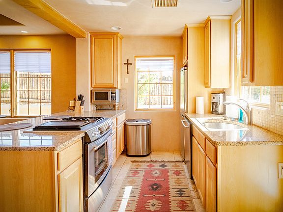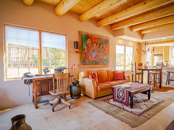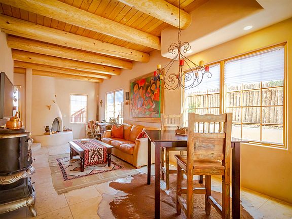 This is the best value on the market within walking distance to the plaza. This immaculate 2-story, one-owner condo invites comfort and exudes modern elegance. The main floor features travertine floors, a kiva fireplace, vigas, and generous living space. The well-appointed kitchen includes granite countertops, gas range, and stainless steel appliances. The entire second floor serves as the master suite, with jetted tub, walk in closet, and a private deck with views of the mountains and downtown Santa Fe. Watch the sunrise over the Sangre de Cristo mountains every morning. Just blocks from the historic Santa Fe Plaza, this condo offers it's owner(s) both a peaceful retreat and access to all that Santa Fe has to offer. A small private patio that extends into the natural landscape can't be beat. This condo can be purchased fully furnished as well.