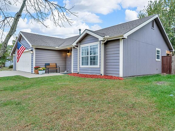 Welcome to this charming and well-maintained 3 bedroom, 2 bath home located on a corner lot, leading into a peaceful cul-de-sac. This lovely one-level home boasts an eat-in kitchen with a dining area, providing ample space for entertaining, and bedrooms with thoughtful touches and beautiful built-in shelving. Enjoy privacy with a fully fenced backyard, complete with a patio, bar top and firepit. Added convenience of a 2-car garage, and easy access to I-70! This home has been lovingly cared for and is move in ready! Free State High School District.