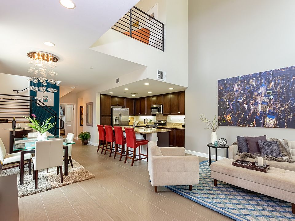 Situated in a premier location in the heart of the Irvine Financial District. This stunning highly upgraded Madison townhouse offers the optimal indoor outdoor living experience. Inside this chic two bedroom two and one half bath plus loft residence, discover open and airy living spaces highlighted by scenic city views, soaring ceilings, recessed lighting, custom flooring, hardwood flooring, built-out master closet, designer chandeliers throughout, custom window treatments and much more. The chef's kitchen includes a large island with slab-granite counter tops, modern cabinetry and professional stainless steel appliances. The entire home has been thoughtfully designed. Featuring a multitude of windows for exceptional natural light, the spacious open floor plan accents the alluring scenic Financial District views. Enjoy alfresco dining, sunsets and city lights from the large rooftop-style balcony. The deluxe property also includes a private two car garage with direct access to the interior. Pride of ownership is showcased in this immaculate turnkey home. Five-Star amenities at Central Park West include two resort-style saline pools and spas, two parks, pickleball court an 8000 square foot gym and fitness facilities and a community event center. Live, work and play in what has become the hottest lifestyle location in Orange County. Convenient to UCI, Fashion Island Newport Beach, South Coast Plaza, John Wayne Airport and pristine beaches.