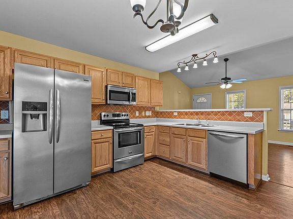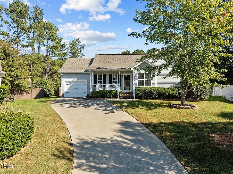 GREAT Ranch home on quiet cul-de-sac! Open layout perfect for entertaining. Convenient to downtown Wake Forest. Walk to Flaherty Park and Dog Park! Living room has cathedral ceiling & gas fireplace, eat in kitchen w/ tile backsplash & dining area. Master suite w/ walk-in closet & beautiful bath. Rocking chair front porch. Beautiful screened porch & fenced yard; 1-car garage. Unparalleled location. Home is in amazing condition!