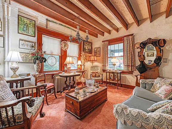 A charming and character filled home is waiting for you! The inviting covered front porch is the perfect introduction to this amazing home. Impressive original woodwork, exposed wood beams, beautiful stone entryway, wood burning stove and so much more. The home also has a detached building that is the perfect location for a business, the current owners used as a Dutch market and previously this property was a Bed & Breakfast. An amazing location that is waterfront on the Pequest River and has a foot bridge to an island in the river! An amazing tranquil setting that is truly unparalleled to any riverfront property currently on the market. This island once used for a wedding, is the truly magical location that could be great for your private use or as a venue for such events. See this incredible place today!