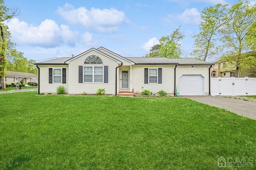 Nice Ranch with 3 bedrooms and 2 full baths. Living room with cathedral ceilings and large windows letting natural light in. L shaped dining off kitchen. Sliding doors to back yard. Kitchen with heated tile flooring and updated appliances and garbage disposal. Pull down stairs to full attic with fan. Full basement with updated electric and plenty of storage. Newer HVAC. Newer metal roof . a security system with smoke detectors. Fully fenced in back yard with patio and large shed. Multi zone sprinkler system. Minutes to McGuire, Ft Dix ^ Lakewood