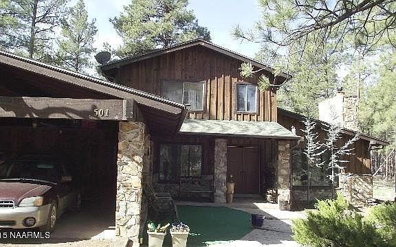 This 3028sf home is on the perimeter of Williams and nestled in the pine trees on an acre of land. The home is a 3-bed, 2.5 bath home that is built to entertain with a large living room, den, kitchen and dining area. Master bedroom is downstairs. The are two small office rooms that could be bedrooms for children so the home could be a 5-bed, home if need be. Home has city utilities and is located in the woods. The tourist cabin has a new roof. There is a large two-car carport attached to home. Shown by appointment only. Pets present. Owner occupant eager to show home.