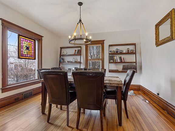 FULL OF CHARACTER AND CHARM. This beautifully decorated 2 story home features an enclosed front porch, gorgeous refinished hardwood floors, original built-ins. spacious living room, and 1st floor laundry. The Private fenced backyard w/large deck and gazebo are great for entertaining and hanging out. In addition to the detached 2 car garage, the house has a walk up attic for additional storage or potential renovation for more living space. Just minutes away from multiple parks and the Fairways Golf Course. Water heater 2018, Furnace and AC 2015, Roof and siding 2015, several new windows in 2015, dishwasher 2023 .
