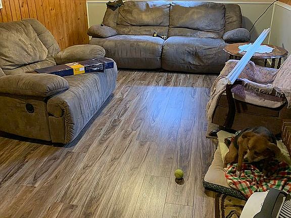 Two bedrooms are extra large with large closets. One small bedroom and a full bath with linen closet in bathroom all located upstairs. Also included is a hall coat closet. Wood floors through except carpeted small bedroom. Large dining/ living room and kitchen on middle level. Nice recreational/ living room downstairs with completely separate laundry room with exit door. One bedroom and a 1/2 bath. Also a closet. All this is on the lower level. Large backyard and front. Wide driveway for Camper parking and large boat.This is a corner lot with mature shade trees.New floors in den and bathrooms.New shutters around windows.Home is for sale at $239,900Dollar general store and library is within walking distance.