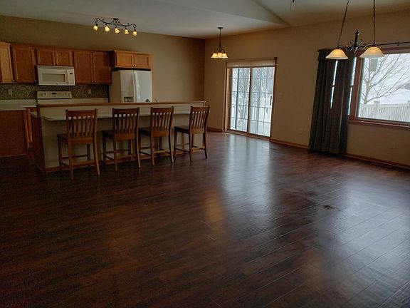 Enjoy small town living at its best in this meticulously maintained town home. Over 1,600 sq feet and everything you need on one level. The zero entry garage means no steps up into the house. Large master suite complete with dual sinks and big walk-in closet. Main floor laundry, 2nd guest bedroom or office and another full bath. Complete open concept living, beautiful views out the new windows or from the deck and all new flooring throughout. Unfinished basement has a 3rd full bath, egress window in place for future bedroom 3 and endless storage. Huge oversized 2 car garage with attic storage above. Outstanding BCLUW schools. Don't miss this!