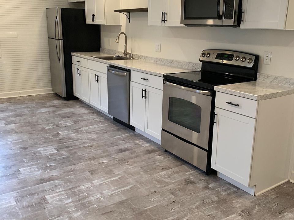 NEWLY remodeled, quiet neighborhood! Very large 1st floor apartment, close to downtown. Large family room, ALL NEW eat in kitchen with stainless steel appliances, large pantry, two large bedrooms with multiple closets in both, all new bathroom with subway tile shower, W/D hookups, back patio. Only two units in building. Tenant responsible for utilities, no smoking
