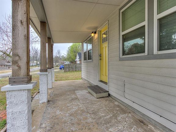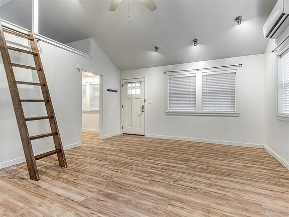 You’ll love this adorable 1-bedroom, 1-bathroom home nestled on a third of an acre corner lot in Midwest City! A charming, covered porch and fresh exterior paint add to the curb appeal. Inside, you'll find a vaulted ceiling and white venetian blinds throughout, creating an airy and inviting atmosphere. The kitchen shines with stainless steel appliances, including a refrigerator. The home also comes with a front loader washer and dryer and has a tankless hot water heater, for added convenience. A loft area offers versatile space, perfect for a reading nook, or accommodating guests. Outside, you’ll find an open deck on the side of the house, a detached garage provides storage space, while an outdoor storm shelter offers peace of mind during storm season. Enjoy the convenience of this great location, just a 15-minute drive to Tinker AFB and 20 minutes to downtown OKC. Don't miss out on this delightful home!
