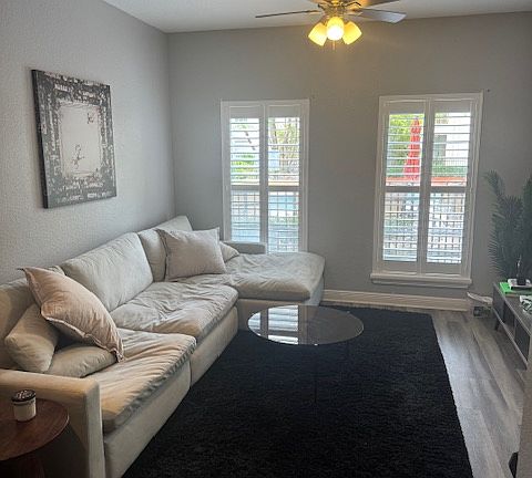 1st floor!! FANTASTIC layout and sizable walk-in closet !! Featuring high, urban living style ceilings, LUXURY vinyl flooring throughout. JUST INSTALLED PLANTATION SHUTTERS