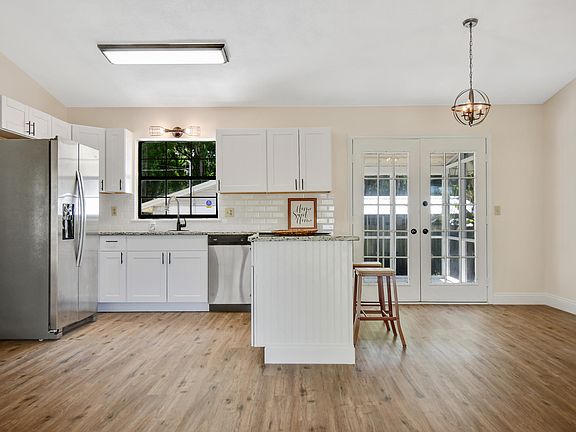 Worry-free country living in the Bass Fishing Capital of the Country! This Fully Renovated Show Stopper boasts a Metal Roof, New AC, New Hot Water Heater, Granite, Stainless Steel Appliances, Luxury Vinyl Plank Flooring. This Home is a Split Plan with Open Concept and the Convenience of being by the Lake with Public Boat Ramp AND Close to Shopping! Enjoy your outdoor space, the front porch is perfect for morning coffee, The screened back porch is ideal for summer nights and the deck was made for entertaining. This home has fruit trees, currently in season, and a storage shed that comes with the property! Plenty of parking is available with the carport and oversized circular driveway. With three bedrooms and two bathrooms, there's room for everyone. Ideal for your Primary Home, Investment