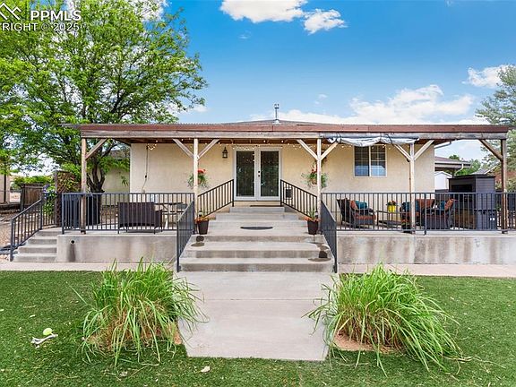 TRUE WOW HOUSE * Rare, hard to find, all square footage is on ONE LEVEL * Curb appeal galore, circular driveway is a showstopper * Stunning 4-bed, 3-bath, rancher on oversized lot in the coveted Pueblo West golf course community * Nestled in a quiet, no-thru-traffic neighborhood just one block from Desert Hawk Golf Course and minutes from Pueblo Reservoir, top-rated schools, and the paved Pueblo West Trail System * Spacious 2,609 Sq. Ft. home delivers the perfect blend of comfort, convenience and remarkable lifestyle * Enjoy vaulted ceilings and an open and bright feel thru-out featuring multiple living areas—ideal for relaxing and great for entertaining * The cook's dream kitchen boasts 2025 Samsung Bespoke Smart appliances including a French door fridge with dual ice makers and a convection range with air fry, dehydrate, and bread-proof settings. * 2 Potential Primary Suites make this home very versatile with multi-generational living opportunities * Game and Recreation spaces are creatively thought out * Step out to the covered patio with panoramic views of Pikes Peak, the Wet Mountains, and Sangre de Cristos * Host unforgettable gatherings in the fully fenced backyard featuring an above ground pool with artificial turf surround, a large garden with fire-pit, newly planted ornamental fruit trees, landscaping & perennials * Freshly painted fence and lush landscape enhance the outdoor charm * Practical perks abound: dual doggie doors, RV/boat parking, garage storage with a customizable tool wall, outdoor shed, and upgraded lighting (2023) in kitchen, dining, and living spaces. New bedroom and bathroom flooring in 2025 * Conveniently located just 5 minutes to Pueblo West High, Skyview Middle & Sierra Vista Elementary * Smart garage door opener with energy-efficient features add modern ease * This exceptional home checks every box for AWESOME living, entertaining in one peaceful retreat * New roof in 2016, truly move-in ready, look no further, start packing... WOW!