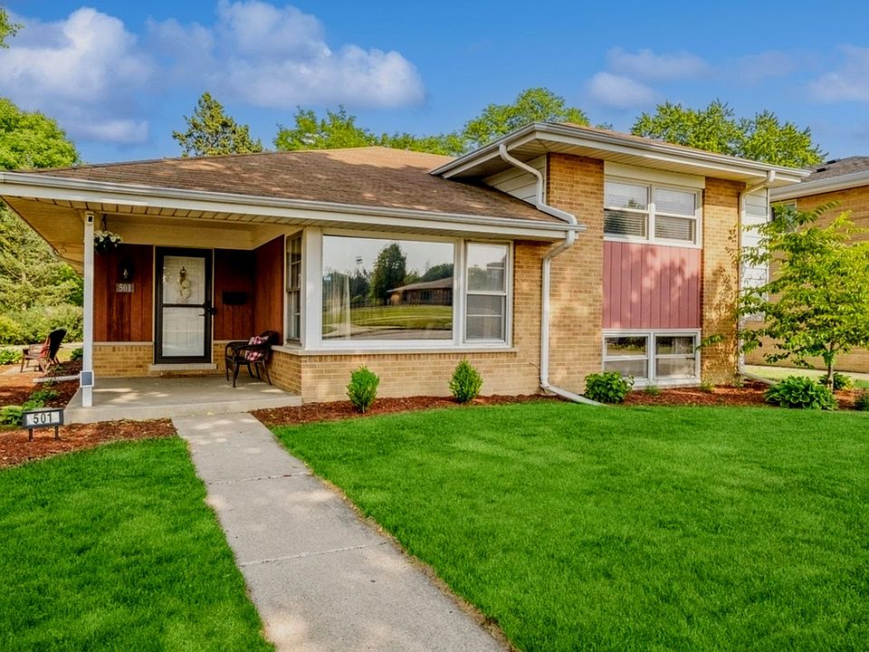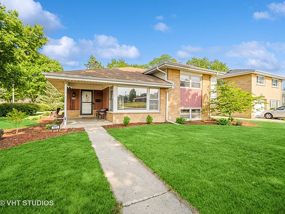 LOCATION, LOCATION, LOCATION! This beautiful three-bedroom, one and a half bath home with detached two-car garage is in desirable Lions Park neighborhood with awarding-winning schools and family-friendly downtown just a short walk away. The kitchen, pantry, & bathroom on the first level were all updated in 2020 from top-to-bottom, including floors, kitchen windows, stainless steel appliances, concealed dishwasher, cabinetry, lighting, and custom quartz countertop. All bedrooms and full bath are on the upper level, while the main level has an open floor plan for the living room and dining room area. On the lower level you will find the large, finished rec-room, laundry room, and a storage room already pipe-fitted for bathroom conversion. For those looking to raise a family, this light-filled estate is just steps from both a fully equipped playground and Lions Park Elementary School - part of the popular D57 school district that feeds into Prospect High School (Top 15 in State in 2023). If outdoor activities and entertainment are your thing, this spacious corner lot is right near tennis courts, baseball diamonds, basketball courts, the Big Surf wave pool, and the fields of Lions Park - including the well-known Bandshell where concerts and the community band provide free entertainment all summer long. And if you don't like to drive, you won't have to when you are just a ten-minute walk from downtown Mount Prospect, which includes a full grocery store, several restaurants, beautiful library, coffee shops, village hall, a Metra Station, and all the fun family-friendly events that come with a suburban downtown area like outdoor movie nights, concerts, and holiday festivals. Come experience life in the '56 today!