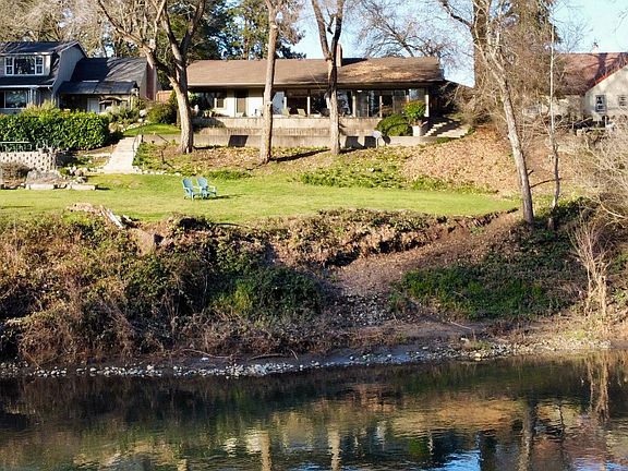kitchen,breakfast nook,walk-in pantry & endless storage offer many conveniences. The primary bedroom embraces river views,patio door, with an en-suite/ample closet space. Bonus guest room with en-suite bathroom plus a den w/closet/ built-in desk add functionality. Easy Rogue river access await