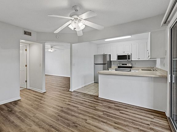 Plenty of room in this 3 bedroom, 2.5 bath townhouse in the community of Cricket Club. Downstairs you will enjoy an extra large "L shaped" living room, separate dining room with a sliding glass door leading to a screened porch. The kitchen features all white cabinets and stainless steel appliances including a refrigerator, oven/range, built-in microwave, dishwasher and disposal, plus a breakfast bar overlooking the dining room. Also on the first floor is a convenient half bath and a large storage closet under the stairs. On the screen enclosed porch you will find a laundry room with washer and dryer and more storage! Upstairs you will find the master bedroom with dual walk in closets, spacious bathroom with walk in shower and a screened balcony. Two additional bedrooms, a second full bath and linen closet are also on the second floor. Plus, all rooms have lighted ceiling fans and blinds on the windows, along with new luxury vinyl plank and a freshly painted interior. Two assigned parking spaces with this unit. There is also a community pool, clubhouse, basketball, racquetball and tennis courts. Mailbox is near clubhouse, #B3. Limit 1 animal under 40 lbs. with $250.00 non refundable animal fee. No aggressive breeds. No exotic animals.