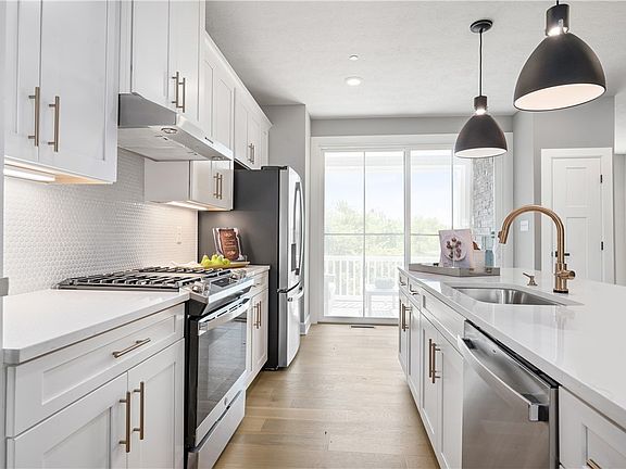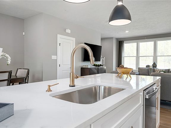 The Serenade plan offers an updated take on outdoor living, with a covered deck included off the main level. Inside, the kitchen has a large island, plenty of cabinets and a pantry for storage. Upstairs are 3 large bedrooms, including the owner's suite with walk-in closet and bath with dual vanities and large shower with 2 shower heads and a seat. On the lower level is a finished walkout basement plus a 2-car garage.
