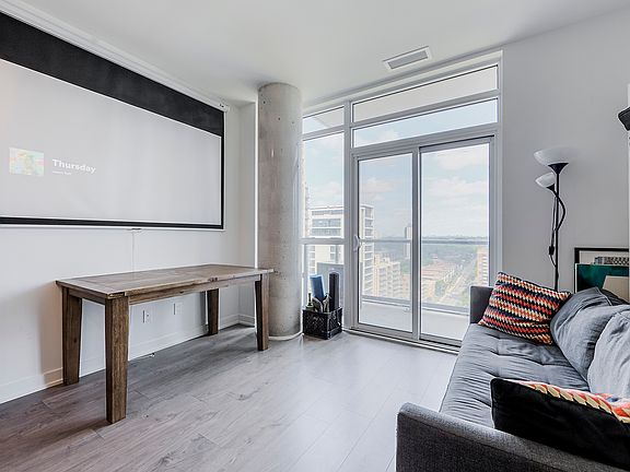 FURNISHED ~ Experience the perfect blend of style and comfort in this fully furnished 1-bedroom + den condo, ideally situated at Bathurst and St. Clair in the heart of the sought-after Casa Loma neighborhood. Thoughtfully designed with an open-concept layout, this home offers a seamless flow between the living and dining areas, perfect for both relaxing and entertaining. Modern laminate flooring stretches throughout the space, complemented by floor-to-ceiling windows that flood the interior with an abundance of natural light. Step onto your private balcony and take in breathtaking, unobstructed views of the city skyline, offering a serene escape from the everyday hustle. The sleek kitchen comes equipped with built-in stainless steel appliances, including a fridge, microwave, stove/oven, and dishwasher, ensuring both functionality and elegance. A stacked washer and dryer add convenience to your lifestyle. Beyond the unit, enjoy the exceptional amenities the building has to offer, including 24/7 concierge service, a state-of-the-art fitness center, and a stunning rooftop deck complete with BBQ facilities ideal for unwinding or hosting guests. Nestled just steps from vibrant restaurants, convenient grocery stores, and seamless TTC access, this home is perfectly positioned for urban living at its finest. Please note that parking and a locker are not included, and hydro is billed separately.Elevate your living experience. Welcome to your new home.Stainless Steel/Integrated Appliances - Fridge, Microwave, Stove/Oven, Dishwasher. Stacked Washer And Dryer. No Parking Or Locker. Hydro Is Extra.Available February 1st, 2025 For $2395 Per Month!