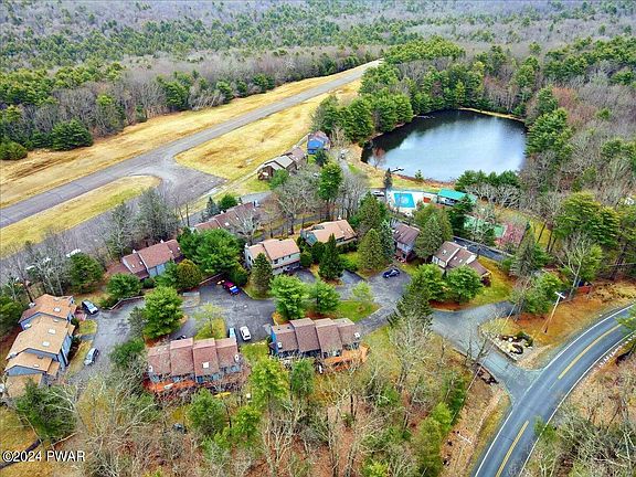 DESTINATION LAKE WALLENPAUPACK~ Attn PRIVATE PILOTS Mountain View Villas offers walk to your plane from your door of this two story Townhouse with massive double sun decking entertaining, open floor plan, large breakfast bar, vaulted skylight ceiling, fireplace and plenty of sunshine windows. Private amenities include pool, tennis, Pavilion and pond enjoyment. So Much to Offer, charming, comfortable low maintenance and peaceful living.