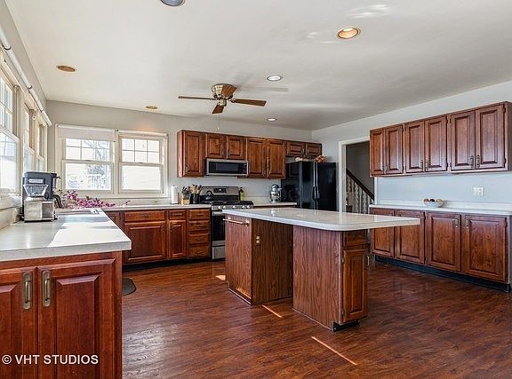 Welcome to this charming 4-bedroom, 2-bath split-level home designed with an open floor plan that enhances both space and light. The inviting living room, featuring a bay window, flows effortlessly into a spacious kitchen and dining area, complete with abundant cabinets and a large island with a breakfast bar. The convenience of a first-floor laundry room adds to the home's functionality. Upstairs, you'll find three bedrooms and a full bath. The finished English basement, filled with natural light, includes a large family room, bathroom and a fourth bedroom. Enjoy outdoor living in the fenced backyard with a deck that backs up to McHenry West High School. Modern touches include neutral colors, updated lighting, a whole house fan, a Nest thermostat, several new windows and a reverse osmosis tank. Situated in a peaceful, well-established neighborhood and just minutes from parks, the hospital, and the vibrant downtown McHenry district. Estate sale.