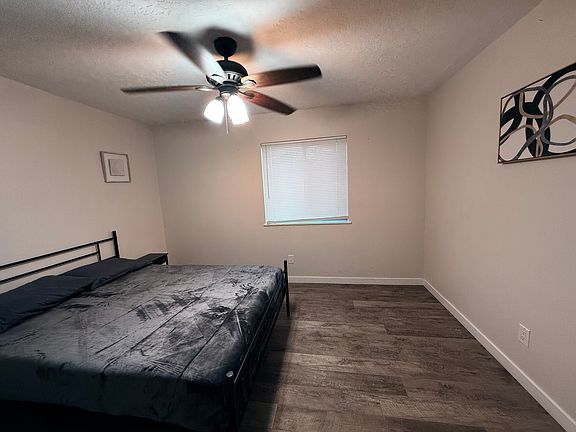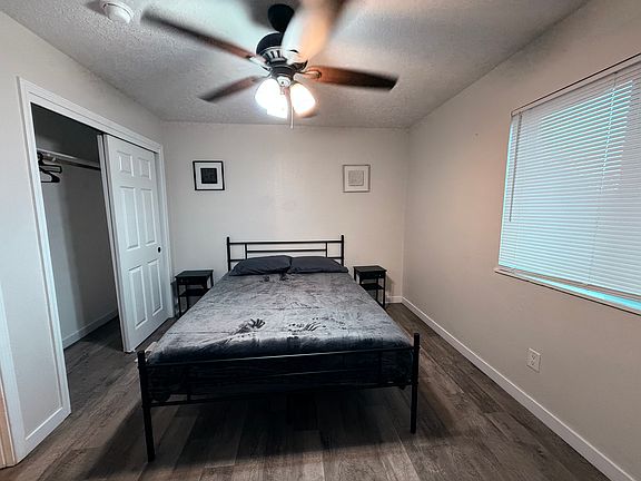 Charming 2-Bedroom/1-Bathroom Unit with Modern Amenities Welcome to your new home! This beautifully updated rental unit features modern finishes and a clean, neutral color palette. Enjoy the comfort of two spacious bedrooms, each equipped with ceiling fans and ample closet space. The full bathroom is updated with a modern vanity, contemporary fixtures, and a stylish shower curtain. The open-concept living area includes a cozy seating arrangement with plenty of natural light, leading into the kitchen equipped with black appliances, spacious cabinets, and durable countertops. Stay cool year-round with the air conditioner already installed. For added convenience, a washer and dryer are also connected. Additional highlights include: Gated parking for security and peace of mind Fenced backyard for added privacy and outdoor enjoyment Water and trash included in the rent Beautiful wood-look flooring throughout the home Air conditioning and ceiling fans for comfort Easy access via updated stairwell with sleek finishes This rental is perfect for professionals, small families, or anyone looking for a clean, modern space in a secure, well-maintained environment. Schedule a viewing today and make this your next home! Contact us now to book a showing! Owner pays water and trash services. No smoking inside the house. Up to 3 pets allowed. Deposit and first month of rent require at signing of lease. First month gets pro-rated if not moved on the 1st of the month.