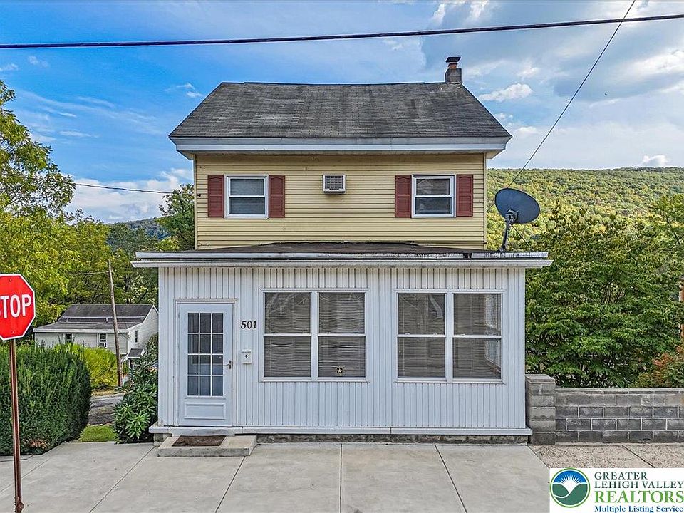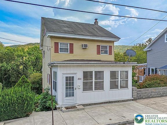ENJOY the mountain view and ideal location of this Single CORNER Home situated on an oversized lot located in Jim Thorpe Borough. Walking distance to downtown Jim Thorpe and the Switchback trail. Home offers spacious eat in kitchen/ dining area and rear partially covered deck. Spectacular views from rear deck perfect spot to unwind. As you enter into the home you will pass through a 4 season room which offers ample natural lighting. Charming original wood railing system that spans to the second floor. Second floor offers 2 bedrooms, one full spacious bathroom that is accessible from either bedroom. Third floor walk up attic/ 3rd bedroom which is finished & consists of closet and heat source. Recreation room and Laundry area are located in walkout basement which has tons of potential and is partially finished. Rear yard is ideal for gardening, entertaining, or grilling. The property also offers a one car detached garage and shed. Call today to schedule your own private showing before this GEM sells!