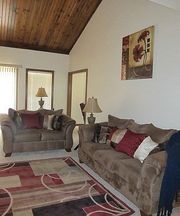 Move in ready unit. Cathedral ceiling greatroom with wraparound fireplace. Breakfast area and dining room space if desired. Bonus room can be extra family room or office. 2 full baths. Covered deck with large backyard space. Neutral wall colors. 2 car garage offers storage space.