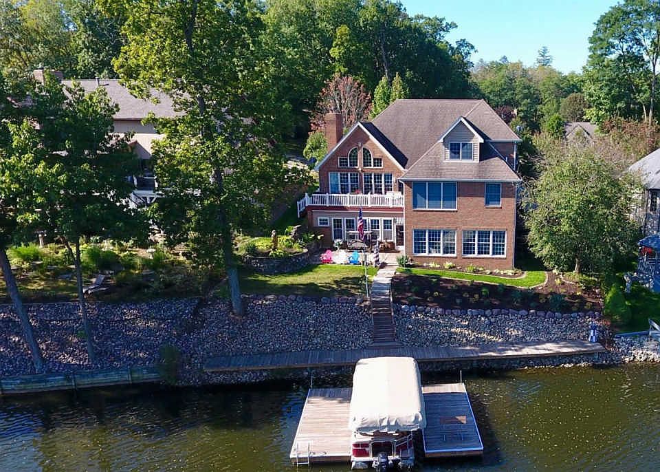 Lakefront home in Shorewood Forest with stunning lake views. Upon entering the home you have a formal dining room to the left and an office to the right. As you enter the great room, you notice the lake immediately, as a wall of windows highlights the view and this open-concept floor plan allows for entertaining large groups of people. The gourmet kitchen is fantastic; walk in pantry, custom cabinets, stainless steel appliances (Subzero and Wolf) granite counter tops, and a breakfast bar. The fireplace is a real wood burner and can heat the entire area. The master en suite is also on the main floor with a large walk in closet and access to the deck; it truly features some of the best views of the lake! The downstairs is enormous -- a game room, family room, screened in porch & another gathering room. The upstairs is hidden behind a bookcase entrance and features three large bedrooms and a full bath. The outdoor spaces are amazing; a great place to spend your summer!