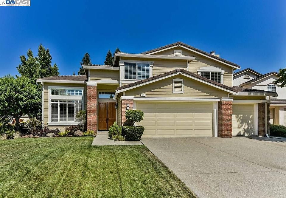 Amazing Bent Creek Valley Corner Lot Symphony Plan with full bedroom and bath downstairs with private entrance. Family room with wood burning brick fireplace, leading to spacious, private, and level backyard with possible side yard access. Spiral staircase leading to 3 auxiliary bedrooms and bonus room with gas fireplace. Spacious master suite with dual sided gas log fireplace. Private master bath with dual vanity sinks, soaking tub, separate shower with new glass enclosure, and walk-in closet. Updated kitchen with stainless steel appliances and custom island, cooktop, and hood. Formal dining with vaulted ceilings. Plantation shutters downstairs & electronic blinds upstairs. Attached 3 car garage. Home is filled with lots of natural light. Located across from Alamo Creek open space and walking trail.