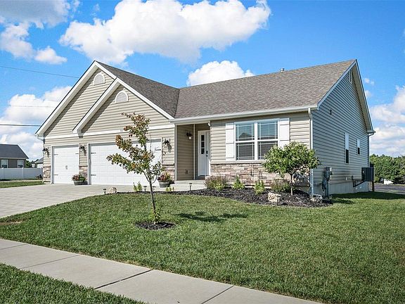 Welcome HOME to this 3 yr young Ranch, w/ nearly 2700 sq ft living space, - towering 10ft ceilings, transom windows and open concept- light and bright vibes only! This home feels spacious and inviting immediately upon entry, with an on trend neutral color scheme and opulent upgrades galore! Jeff Kelly Homes most popular model- The Madison! Custom cabinetry has been added to the Kitchen, along with a closet organizational system in the Primary Suite walk in closet. Plenty of space for the entire family with recent professionally finished Lower Level- complete with extra Bd, Family Room, Workout Room/or extra storage, and spacious Full Bath. Located in sought after Wentzville School District, this town has everything to offer and more! Wentzville is the fastest growing city in MO and is host to the St Charles County Fair and Renaissance Festival! Major retail stores, restaurants plus an abundance of mom/pop shops, for a home town feel.