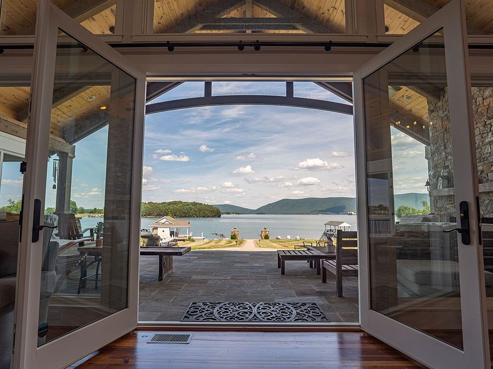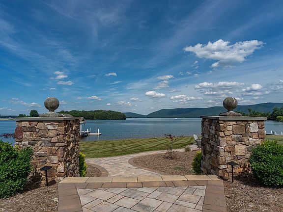 VIEWS! VIEWS! VIEWS! Breathtaking views of Smith Mountain and miles of water from this extraordinary lakefront home. Located on one of the best lots on Smith Mountain Lake! Incredible attention to detail. Casual coastal/mountain retreat feel. Comfortable and easy. Relaxed. Warm. Literally views of the lake from everywhere! All on one level! Ready to Move In! An inviting front porch leads into to a Spacious Great Room in the center of the home with a huge stone fireplace, tall wood ceiling, and a wall of windows and doors overlooking the lake and mountains. Open Kitchen with high end appliances inc double ovens, 6 burner gas cooktop, professional ice machine, brick backsplash and quartz counters. Expansive Covered Porch overlooking mountains and water features Wood Ceiling, Large Stone