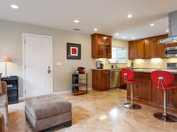Beautifully remodeled home with gourmet kitchen open to family room. 3 bedrooms & 2-1/2 remodeled baths. Wood flooring thru living & dining room. Kitchen and entry have stone flooring. Kitchen has stainless appliances, granite counters and breakfast bar area. Plantation shutters. Side and backyard with area for BBQ & entertaining. 2 car garage and guest parking. Cul-de sac location. Close to F. C. Elem. parks, shops & restaurants.