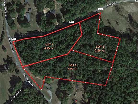 A prime corner parcel on Unity Church Road & Lewis Road with 4.45 +/- acres of beautiful hardwood trees just minutes from Crowders Mountain & Kings Mountain State Park. The beautiful parcel has 700 +/- feet of road frontage on Lewis Road and over 300 feet on Unity Church Road with several spectacular building sites plus a seasonal creek. This excellent location is about 2 miles from the Gastonia city limits, roughly 1 mile from the NC/SC line, about 10 minutes from the new Catawba Two Kings Casino at exit 5 on I-85 and about 45 minutes to Charlotte. You get the best of both worlds, a quiet rural lifestyle but close to everything you need. The projected driveway is on Unity Church, the listed address is not assigned yet and estimated for GPS location purposes only. No mobile homes are allowed, modular or stick built homes are approved.