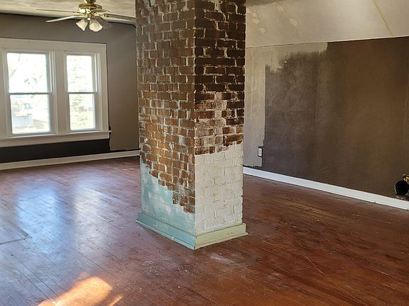 Large home with lots of potential! Very large living room with wood floors & a formal dining room with wood floors. Three bedrooms on main floor and large area on 2nd level for a fourth bedroom. One bedroom has a half bath! Window A/C on 2nd level. Main bathroom remodel was started, it has a tile shower, all you need to add is toilet and vanity. Large 100x140 corner lot with detached garage (oversized one car) and a storage shed. Many of the windows have been replaced.