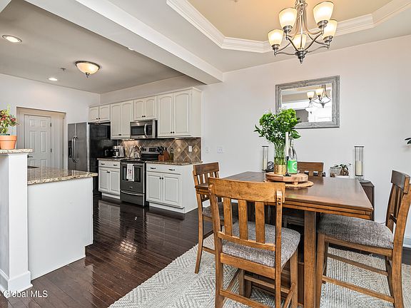 MULTIPLE OFFERS-BEST & FINAL BY SUNDAY, 6/15 at 5PM! First-floor, maintenance-free living at its finest! Hardwoods, updated window treatments, fresh paint & new carpets create an elegant/sophisticated vibe. Private entrance and patio, elevated ceilings/windows make the condo bright and airy. Primary suite features custom closet and on-suite bath. Home office with Juliet balcony could be used as 3rd bedroom. Spacious, ground-level partially finished basement currently used as home office. For outdoor lovers, 2-minute drive to Mohawk-Hudson Bike Path for exercising/relaxing strolls. Smart technology - doorbell/front door/thermostat controlled with the touch of a finger. Park 2 cars in garage, kick back while the HOA tackles the lawn, landscaping, snow removal & maintenance.